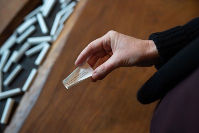 Während ihres Aufenthaltes erkundeten Granser und Theil nur die Umgebung um die Hütte, die sie bewohnten, und Orte, die sie im Rahmen einer Tageswanderung erreichen konnten. Selbst dieser eingeschränkte Radius hatte auf beide eine enorme Wirkung. Auf ihrem "Pilgerweg im Kleinen“ sammelten Sie nach und nach 88 Steine, die sie der Größe nach sortierten und die Granser schließlich fotografierte.