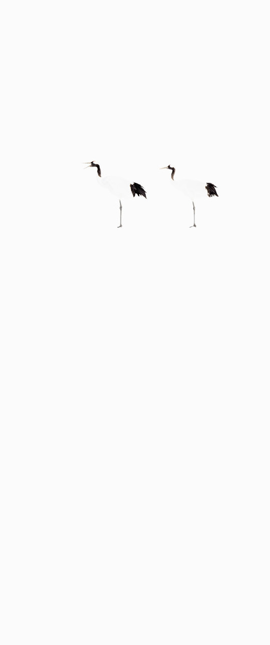 Das zum Teil in Leinen gefasste, ca. 250 cm lange Leporello zeigt abstrahierte Kranich-Fotografien, die sich an der japanischen Wandschirmmalerei orientieren. Diesen wird eine Serie von dramatisch aufsteigenden Dampfwolken aus einem Vulkan am »Ende der Welt« gegenübergestellt. Im Buch ist ein weiteres Leporello mit Gedichten von Mari Kashiwagi eingelegt. Das Leporello bildet mit dem eigens komponierten Sound von Marcin Et Maldoror eine kohärente Einheit.