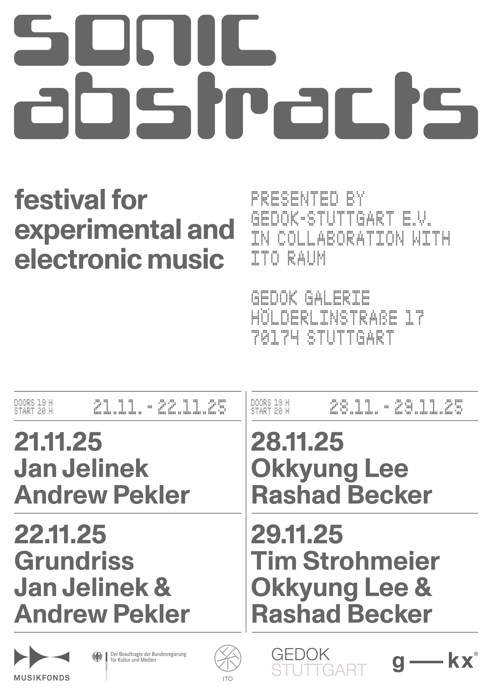 "sonic abstracts" is a new festival for experimental and electronic music organized by ITO in collaboration with Gedok-Stuttgart e.V.