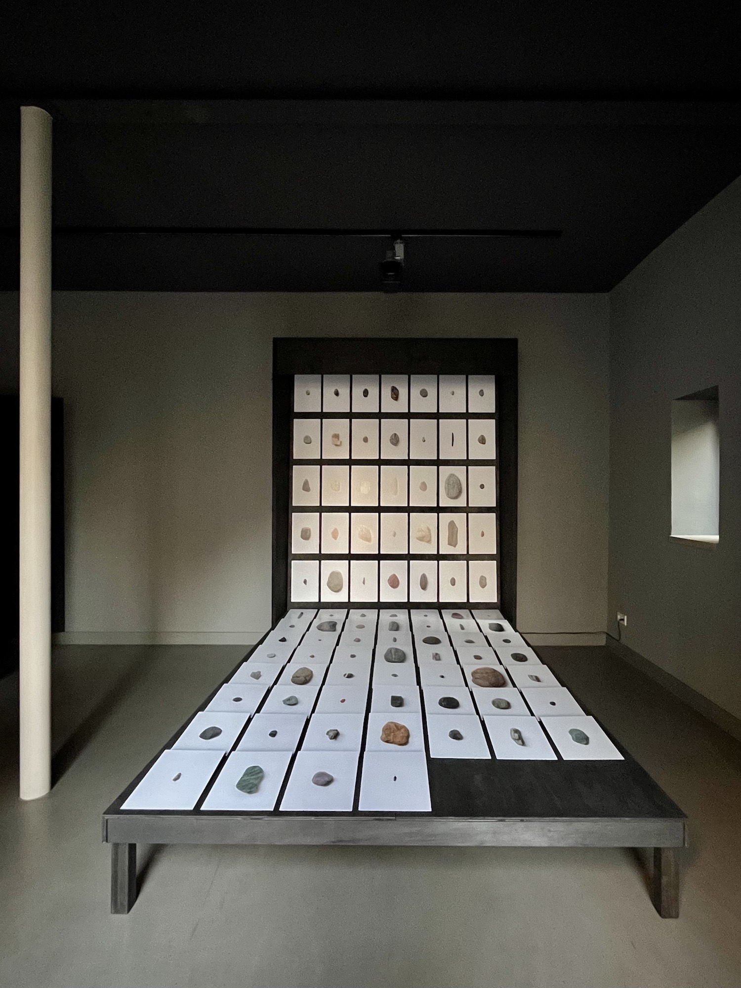 Während ihres Aufenthaltes erkundeten Granser und Theil nur die Umgebung um die Hütte, die sie bewohnten, und Orte, die sie im Rahmen einer Tageswanderung erreichen konnten. Selbst dieser eingeschränkte Radius hatte auf beide eine enorme Wirkung. Auf ihrem "Pilgerweg im Kleinen“ sammelten Sie nach und nach 88 Steine, die sie der Größe nach sortierten und die Granser schließlich fotografierte.