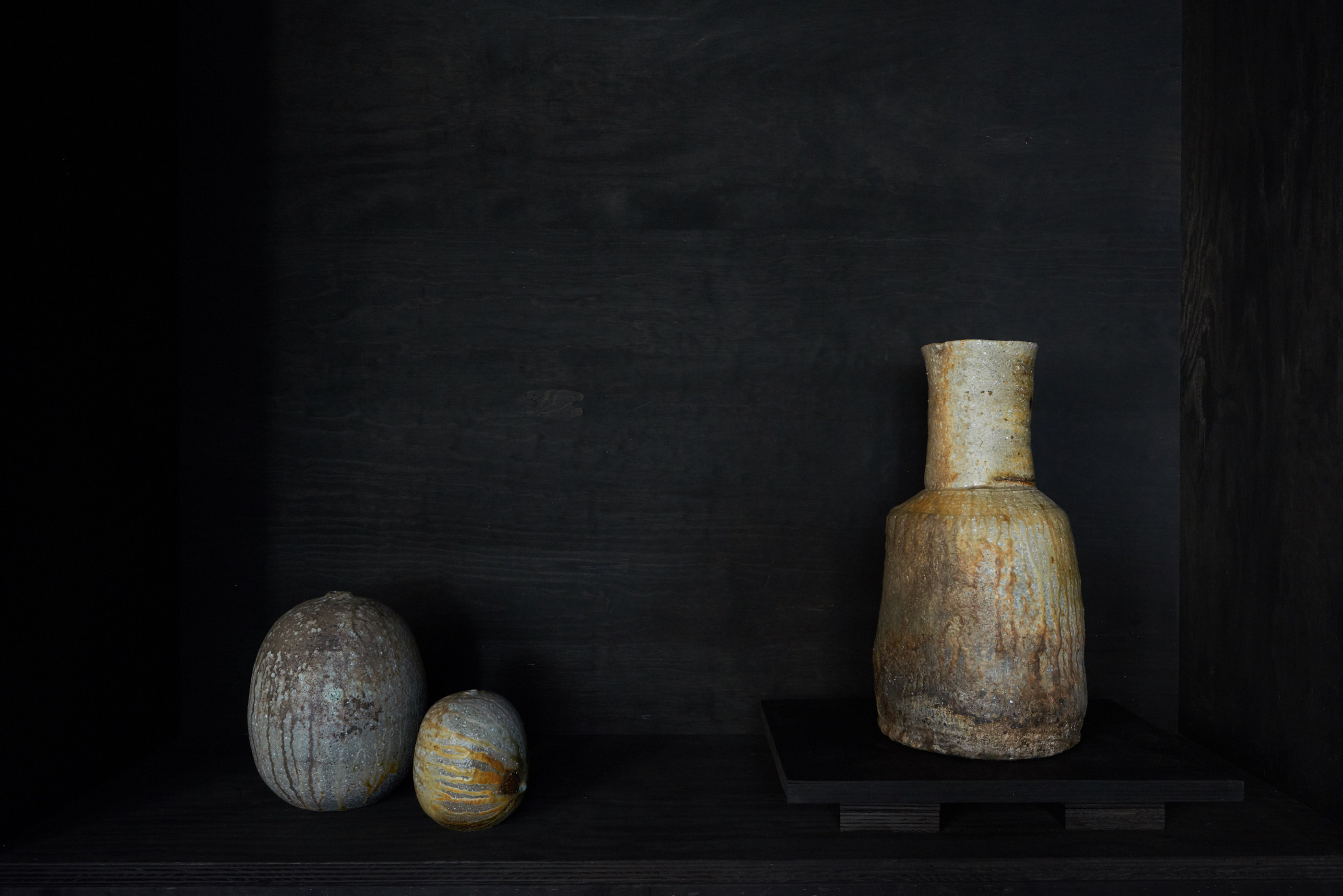 ITO zeigt Teeschalen, Teekannen und Vasen von den Keramikmeistern Tsuyoshi Kato, Shigeyoshi Morioka, Hiroshi Kawajiri, Okano Hosei sowie Matthias Kaiser.