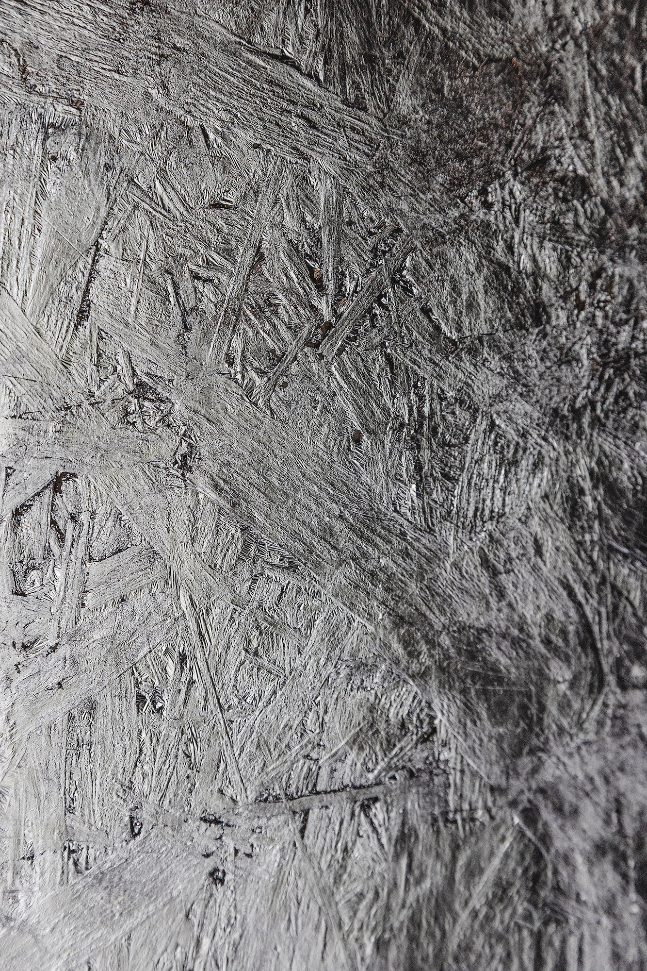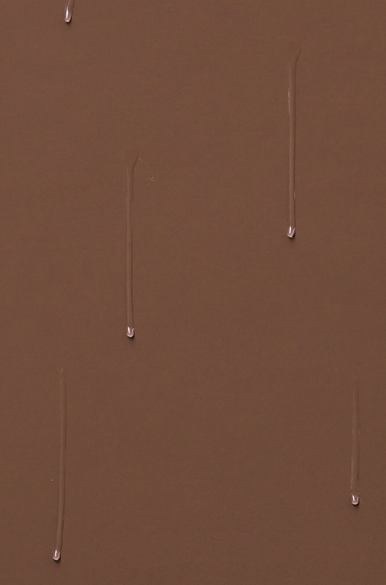 Weich fließen die lichtreflektierenden Tropfen aus transparentem Kunstharz über die fleischfarbigen Bildflächen. Immer wieder glitzern sie im Licht, besonders dann, wenn sich am Ende ihrer Tropfenspur dickere Wülste angesammelt haben. Stellenweise verschwimmt der Hauch ihrer Spur mit dem Untergrund und ist dann nur unmerklich durch eine leicht dunklere Färbung des Inkarnats auf der Holzplatte zu erkennen...