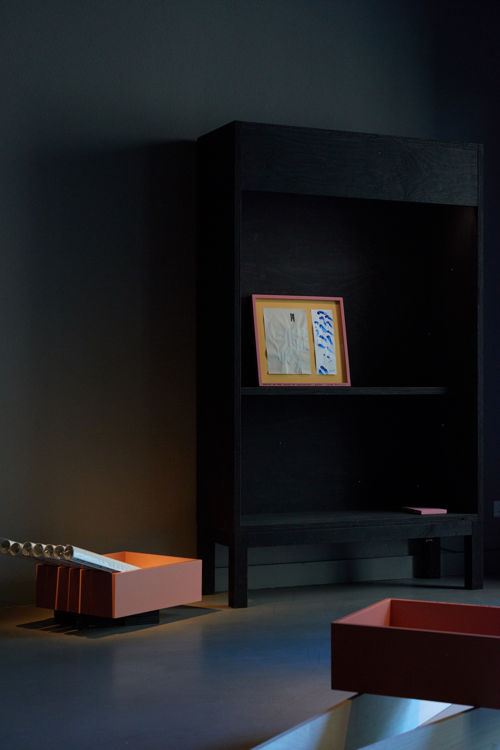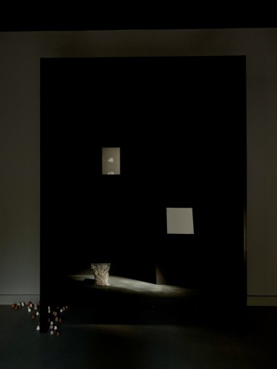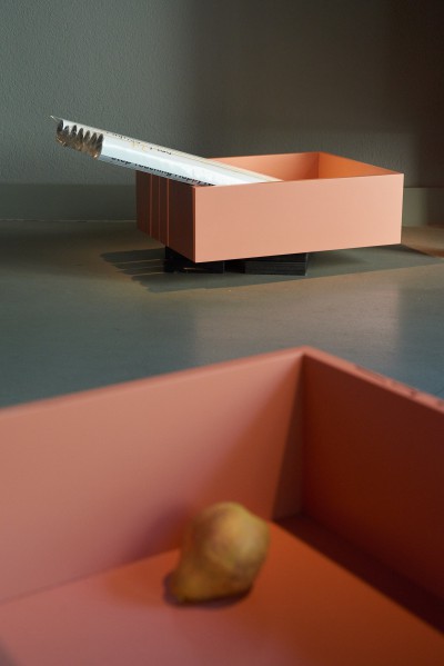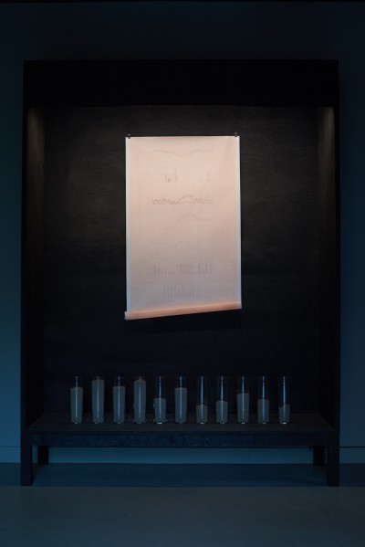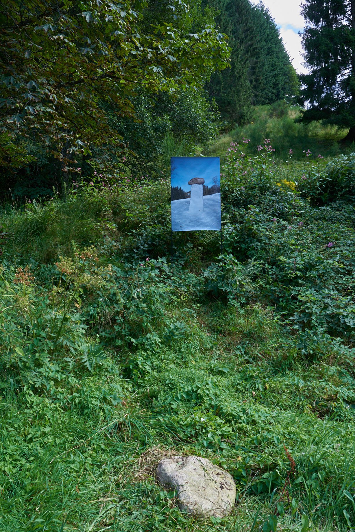 Die Ausstellung im ITO vereint eine Vielfalt von Werken die in wechselnden Konstellationen über den Ausstellungszeitraum hinweg gezeigt werden: das Geräusch des Regens, wie er im Inneren von Ästen klingt; eine Taxonomie des Waldbodens; zwei über Google Maps wiedergefundene Pfade; einen vom Wind bewegten Mondstein; die Essenz der Asche von 1.600 kg Brennholz; peripatetische Naturstudien; eine sonore Stimme im Alter Mittel minus; alle Berge des Schwarzwald, die über 1.000 Meter hoch sind; eine Interpretation von Roland Barthes´ Theorie des Neutrums; das japanische Nodate als soziale Plastik; die Erinnerung einer Schneeskulptur; das koreanische Märchen vom goldenen Zahn; einen versteckten Teegarten; das Grau des Winters und die Farben des Sommers ...
