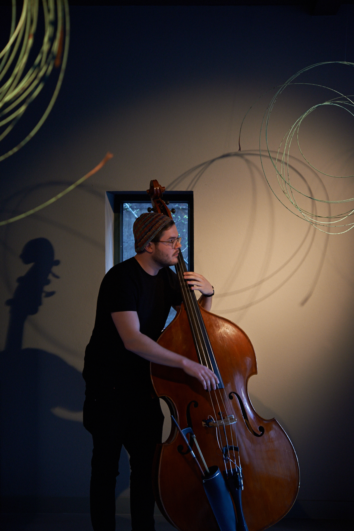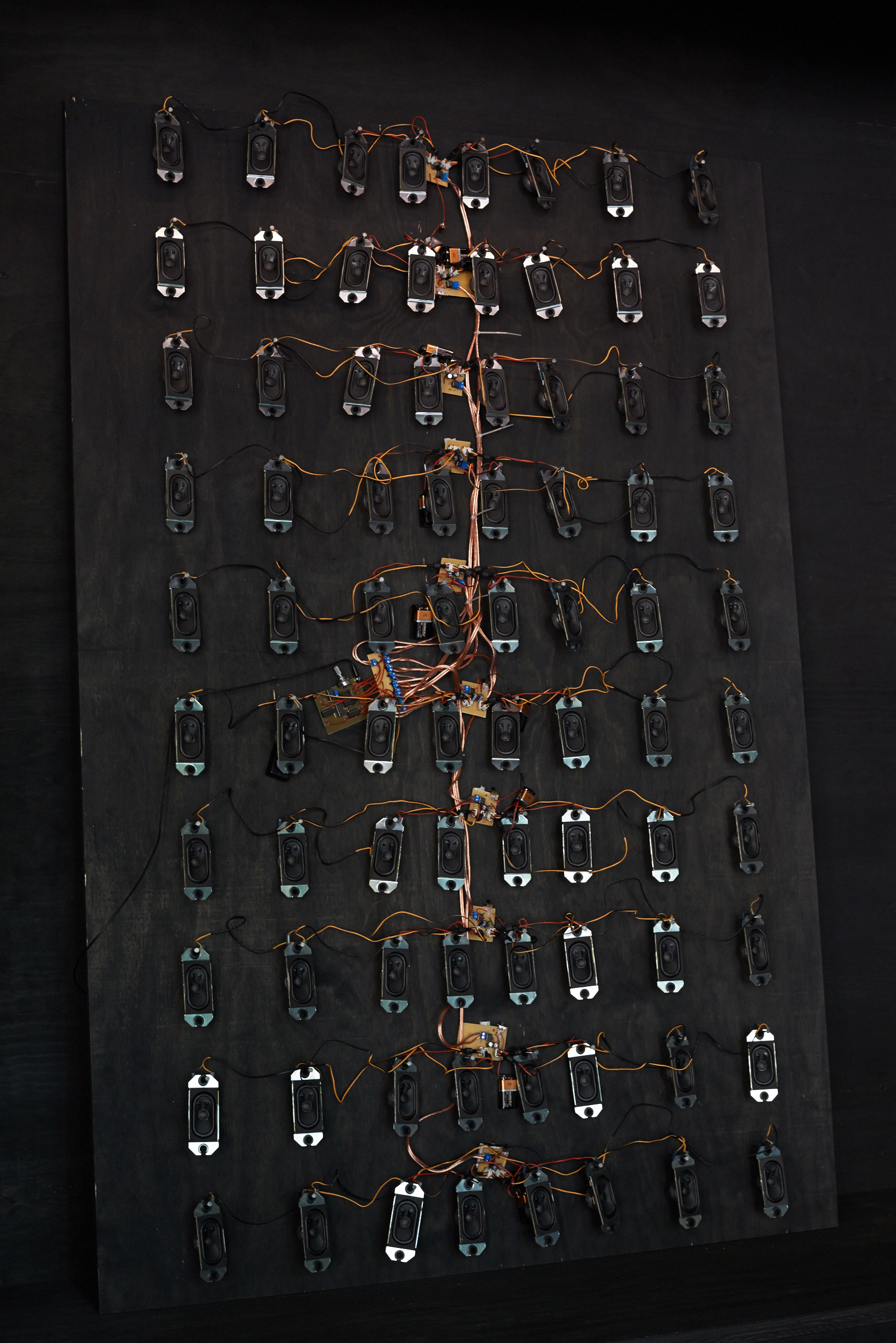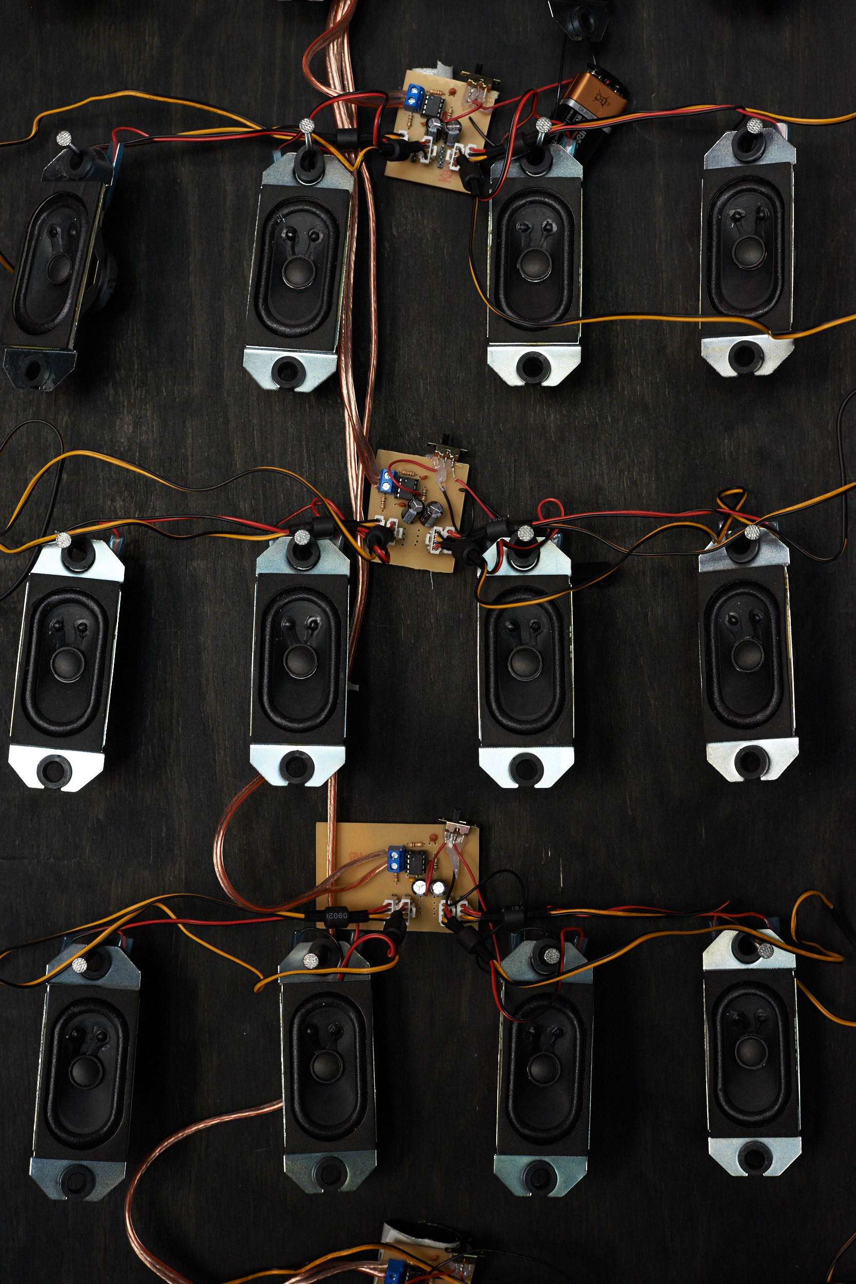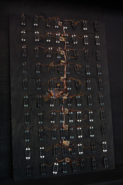 At the intersection of a sound installation and a performance, the duo “condensed and falling in separate drops” creates a resonating territory of frequencies. Standing waves, physical boundaries of sound that can be felt as they pass through you, sonically materialise the space between walls, physically connecting all present. Amidst this atmosphere, sounds of plants plugged to an array of oscillators populate, develop and emphasise the delicate stability of the territory.