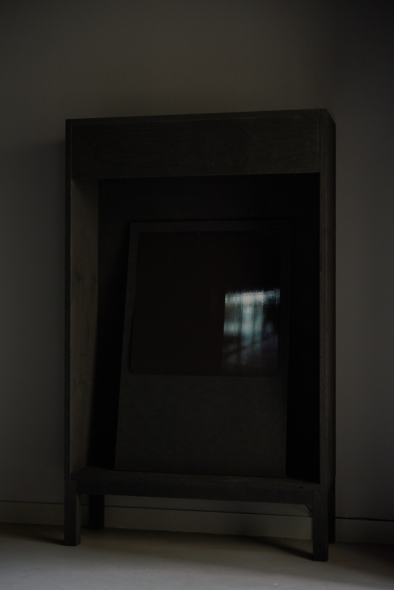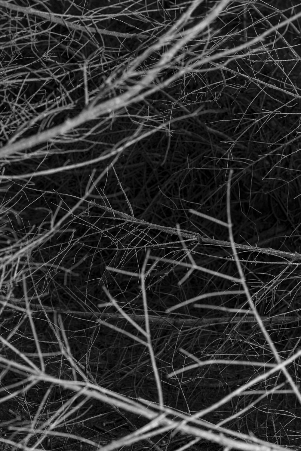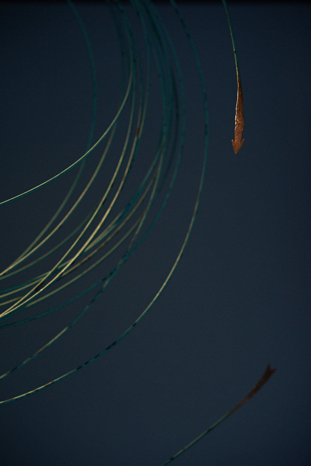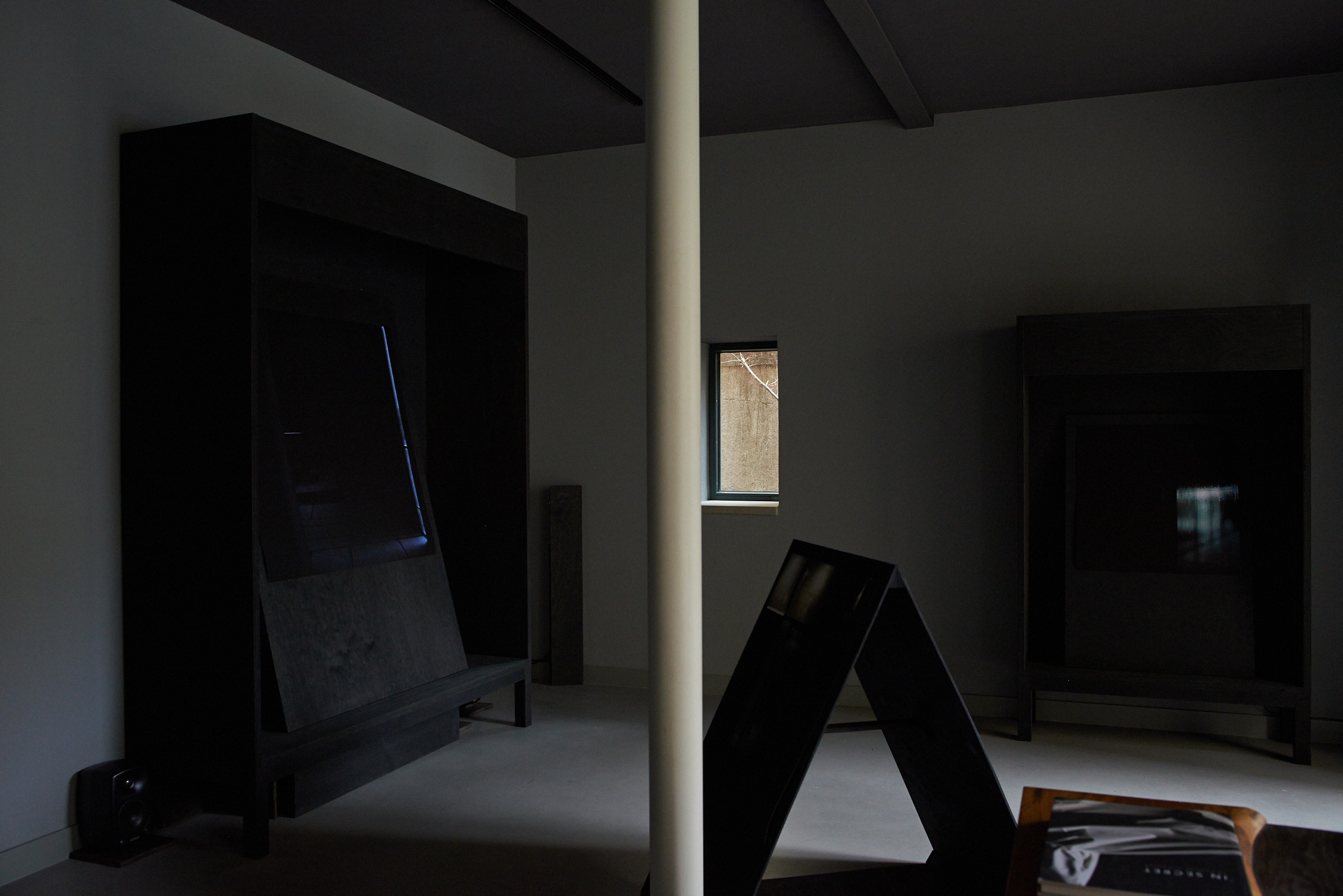 Flaches Papier, gefaltet, wölbt sich in den Raum, Spannungen fliehen. Wirbelnd legt sich Schwärze in die Szene, das dunkle Auge des Sturms. Ein Schlag, Risse verbinden sich, ziehen sich über das Glas. Gefurchter Brocken, die Replik eines der unzähligen Gestürzten. Eine Linie windet sich in Kurven und knotet einen Raum. Schwärme pulsieren, lebendige Wolken. Alles fließt.
