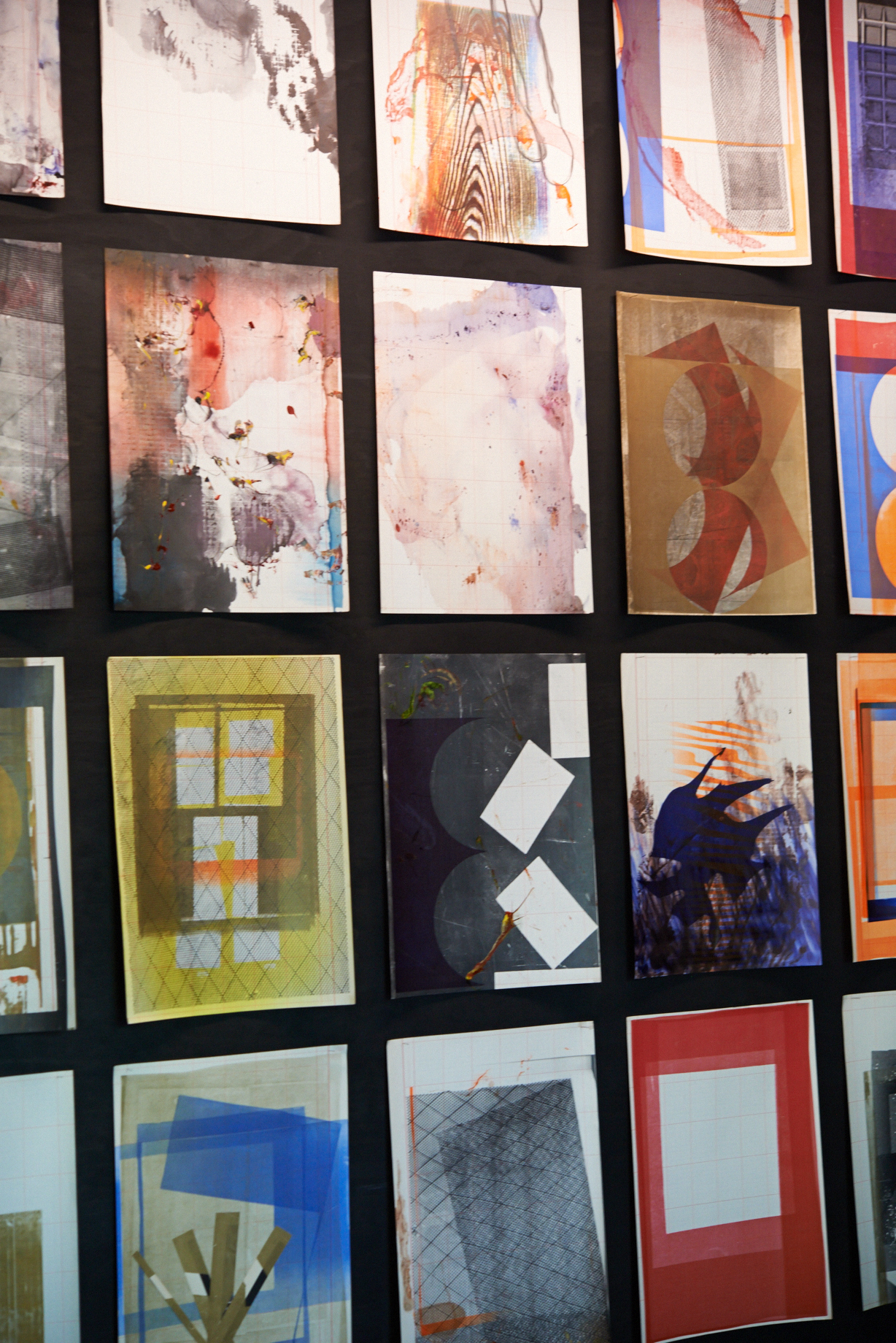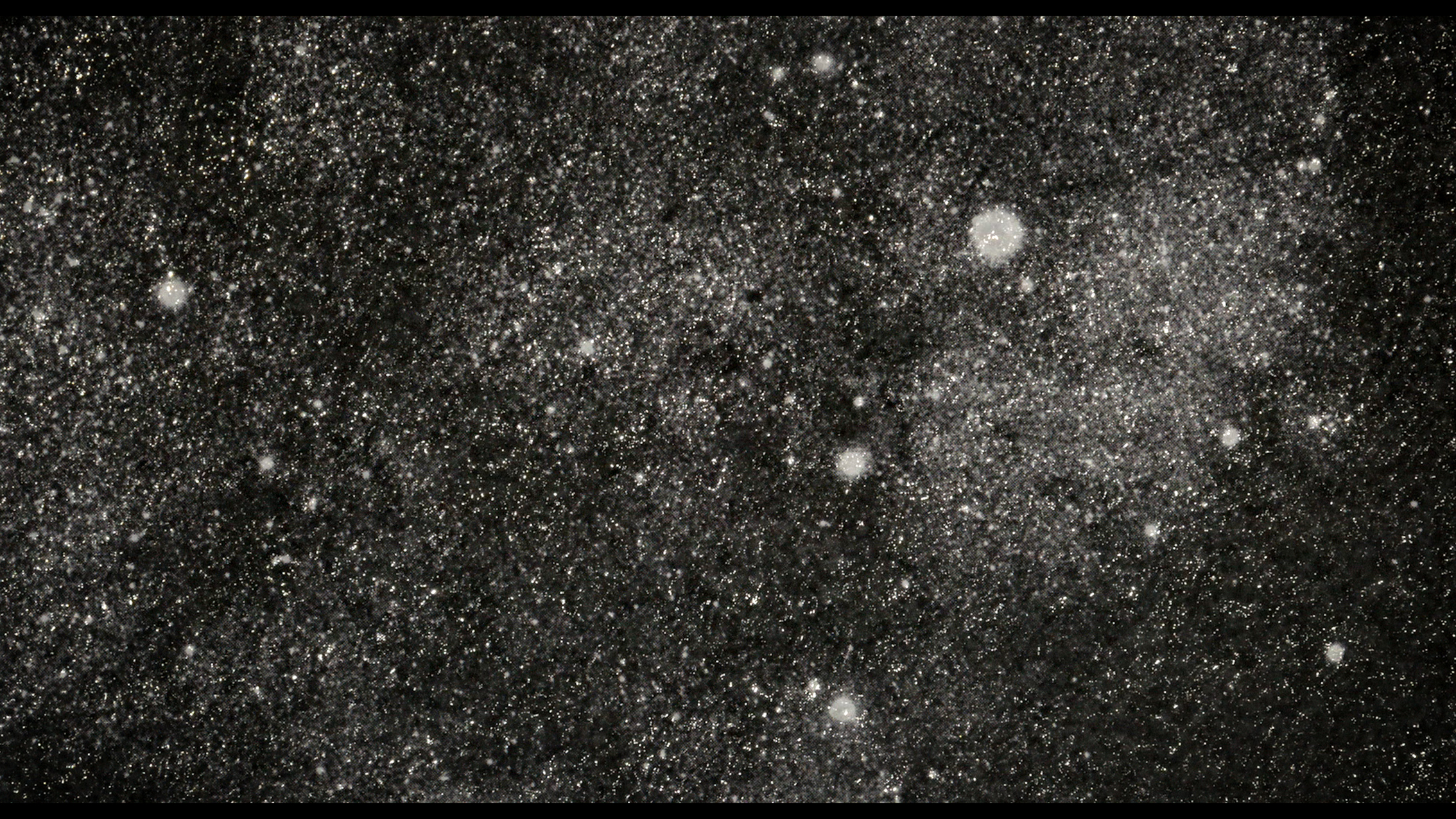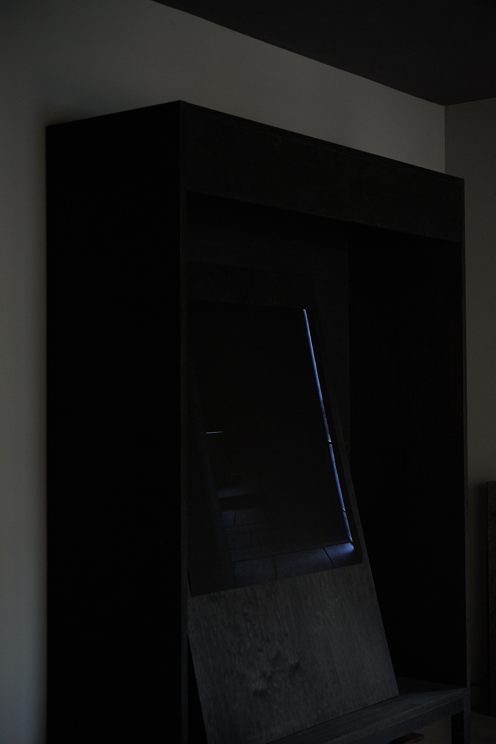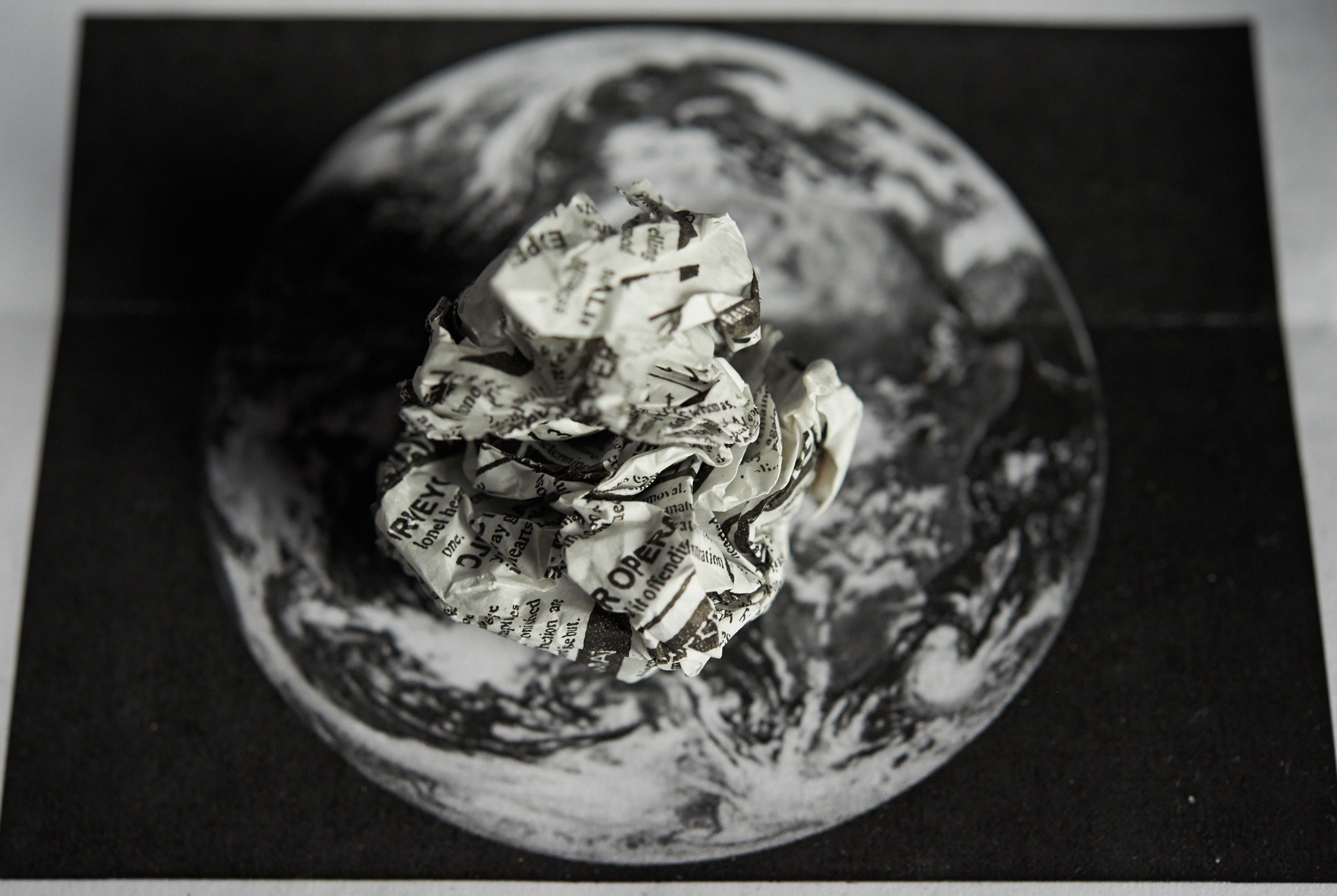 Flaches Papier, gefaltet, wölbt sich in den Raum, Spannungen fliehen. Wirbelnd legt sich Schwärze in die Szene, das dunkle Auge des Sturms. Ein Schlag, Risse verbinden sich, ziehen sich über das Glas. Gefurchter Brocken, die Replik eines der unzähligen Gestürzten. Eine Linie windet sich in Kurven und knotet einen Raum. Schwärme pulsieren, lebendige Wolken. Alles fließt.