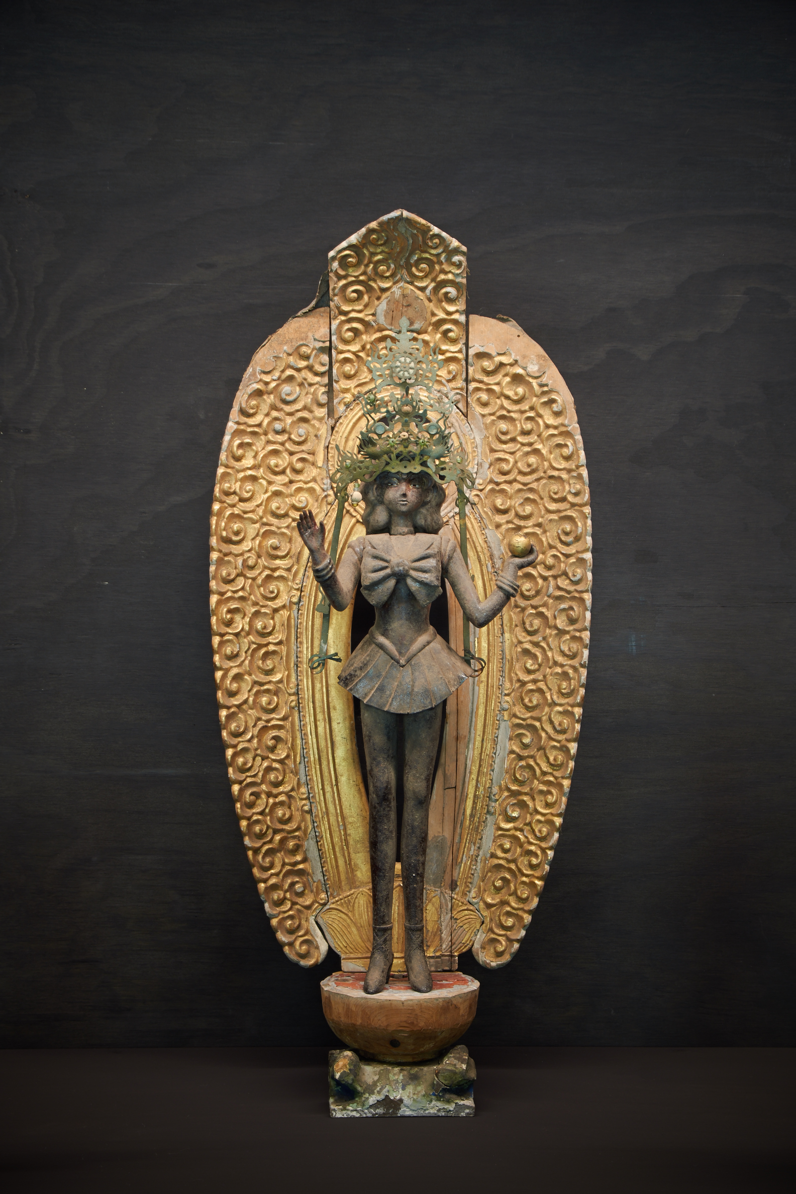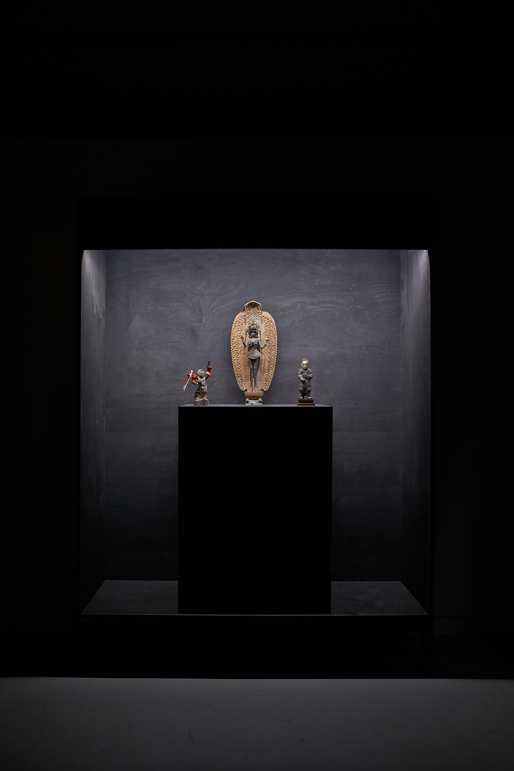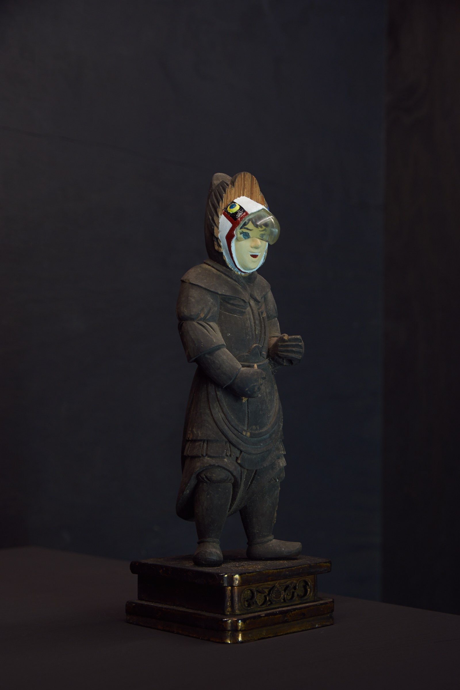 Akihiro Higuchi's fein inszeniertes Spiel mit Kultur, Natur und Kreatur zeugt von einer ästhetisch anspielungsreichen Raffinesse, die in Japan in der Tradition des Mitate, einer ursprünglichen literarischen Form der Beschreibung steht. Unter Mitate versteht man auch das Spiel mit assoziativen Stellvertretern vorgegebener Formen. Berühmte Meister der Teezeremonie aus dem 16. Jahrhundert etwa ersetzten wertvolle Teeschalen durch formverwandte, jedoch minderwertige, nicht für den Teegenuss vorgesehene Gefäße. Die Kunst des Mitate zeigt sich ebenso in den animalischen Werken von Akihiro Higuchi. Etwa darin, dass der Künstler mit dem schelllackähnlichen Glanz der Käfer auf die glänzende Lackoberfläche japanischer Schalen und Gefäße anspielt. In doppelter Hinsicht ersetzt Natur damit den kulturellen Hintergrund, als materieller Bildträger sowie als perfekter Ersatz für einen malerisch erzeugten Untergrund. Ähnlich verfährt Higuchi mit bunten und populären Spielzeugfiguren, die er neben klassische Götterdarstellungen platziert. Die Figuren aus den gegensätzlichen Welten von High and Low haben jedoch eines gemeinsam: ihre Körperhaltung, die sich nach einem tradierten Kanon ausrichtet.