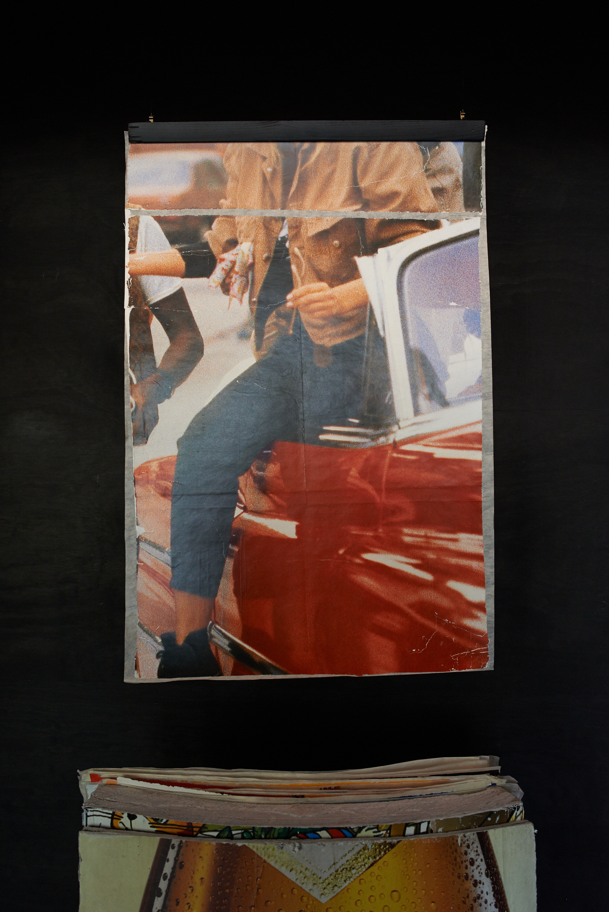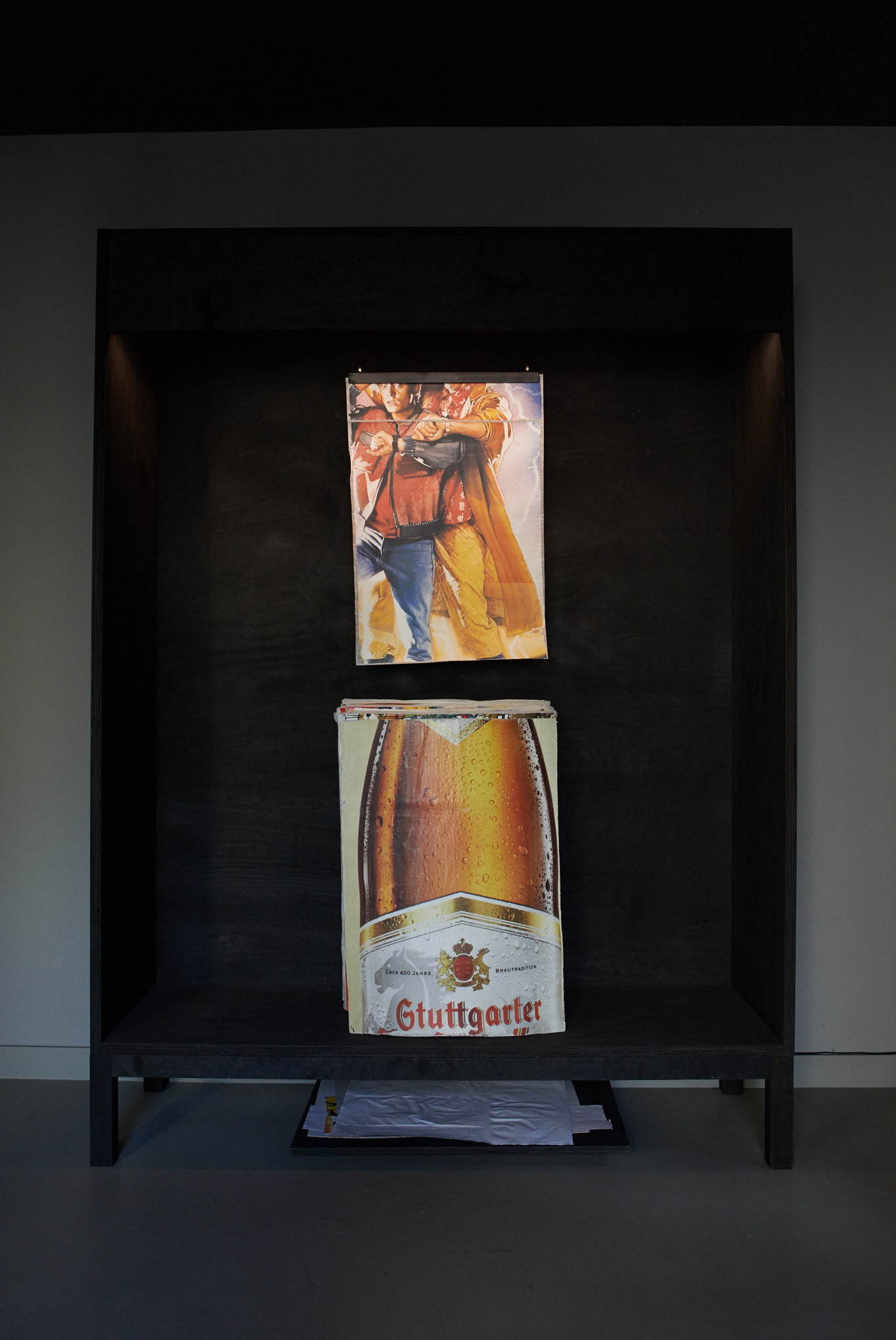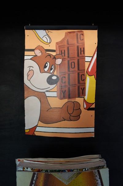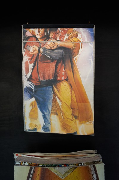 Zeit, Vergangenheit, Gegenwart – Erik Sturm setzt sich in seinen Arbeiten immer wieder mit diesen Begriffen auseinander und hat aus einer über vierzig Jahre beklebten Litfaßsäule große Blöcke herausgesägt. Die darin konservierten Daten und Informationen lenken unseren Blick auf die damaligen Konsumgewohnheiten und Lebensstile der Gesellschaft in den Jahren 1979-2010. In mühevoller Arbeit wurden die vielen Werbeplakatschichten voneinander gelösten und können während der Ausstellung, wöchentlich wechselnd, betrachten werden. Sturms Werbearchiv lädt den Betrachter zu einer nostalgischen Zeitreise ein, auf der man sich aber auch mit kritischen Fragen nach dem gesellschaftlichen Stellenwert von Werbung auseinandersetzen kann.