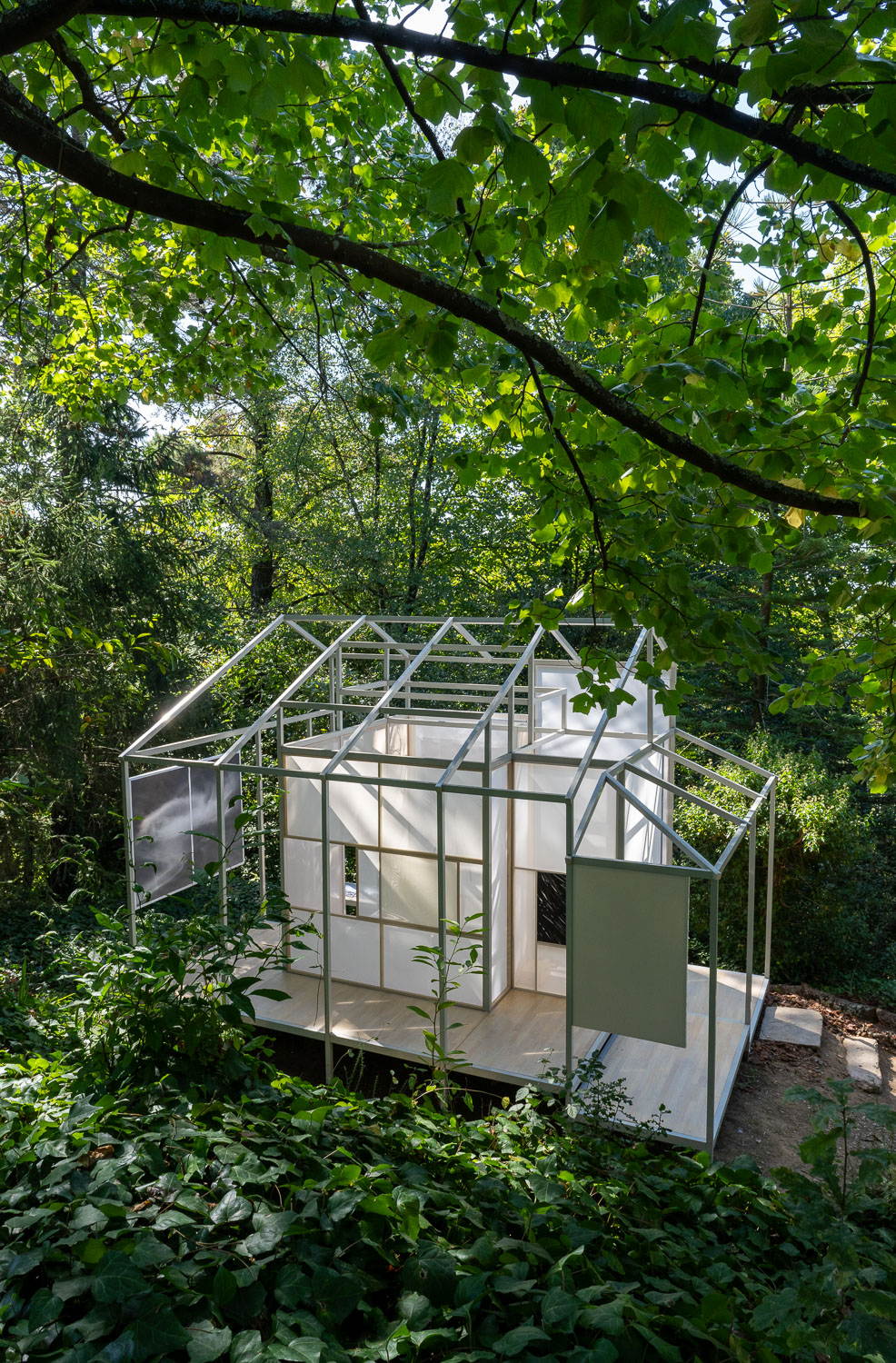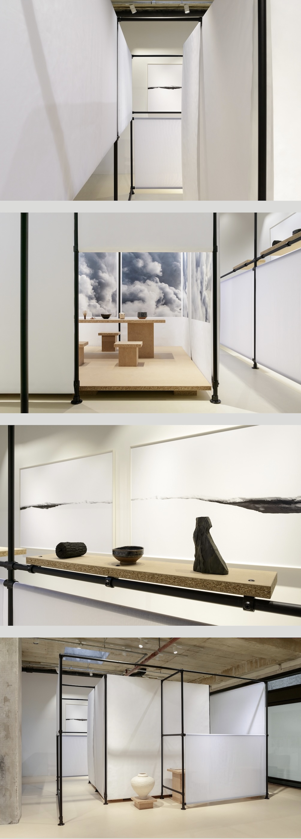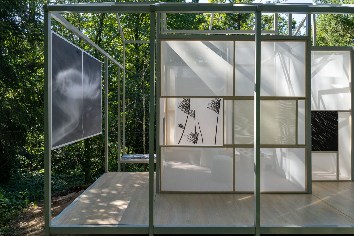 Leiblich erfahrbar wird eine Installation als künstlerische Forschung zur Komposition japanischer Gärten. Im Mittelpunkt steht der Akt des Gehens als kritische räumliche Praxis. Impliziertes wird entschlüsselt, Leere wird verbildlicht, Raum wird zerlegt und wieder zusammengefügt.