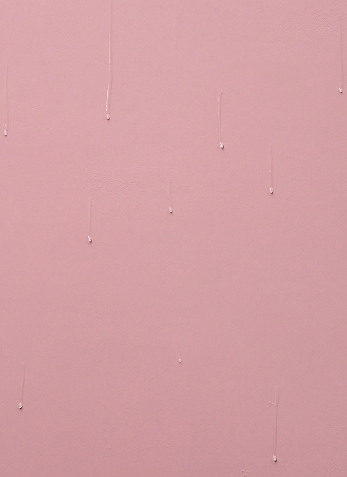 Weich fließen die lichtreflektierenden Tropfen aus transparentem Kunstharz über die fleischfarbigen Bildflächen. Immer wieder glitzern sie im Licht, besonders dann, wenn sich am Ende ihrer Tropfenspur dickere Wülste angesammelt haben. Stellenweise verschwimmt der Hauch ihrer Spur mit dem Untergrund und ist dann nur unmerklich durch eine leicht dunklere Färbung des Inkarnats auf der Holzplatte zu erkennen...